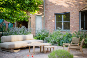 Every room opens to the outside, and when the weather allows, the garden becomes the heart of the experience.