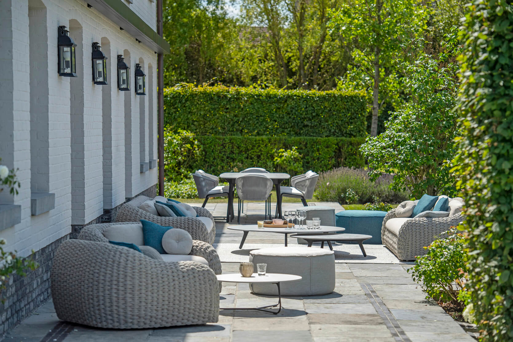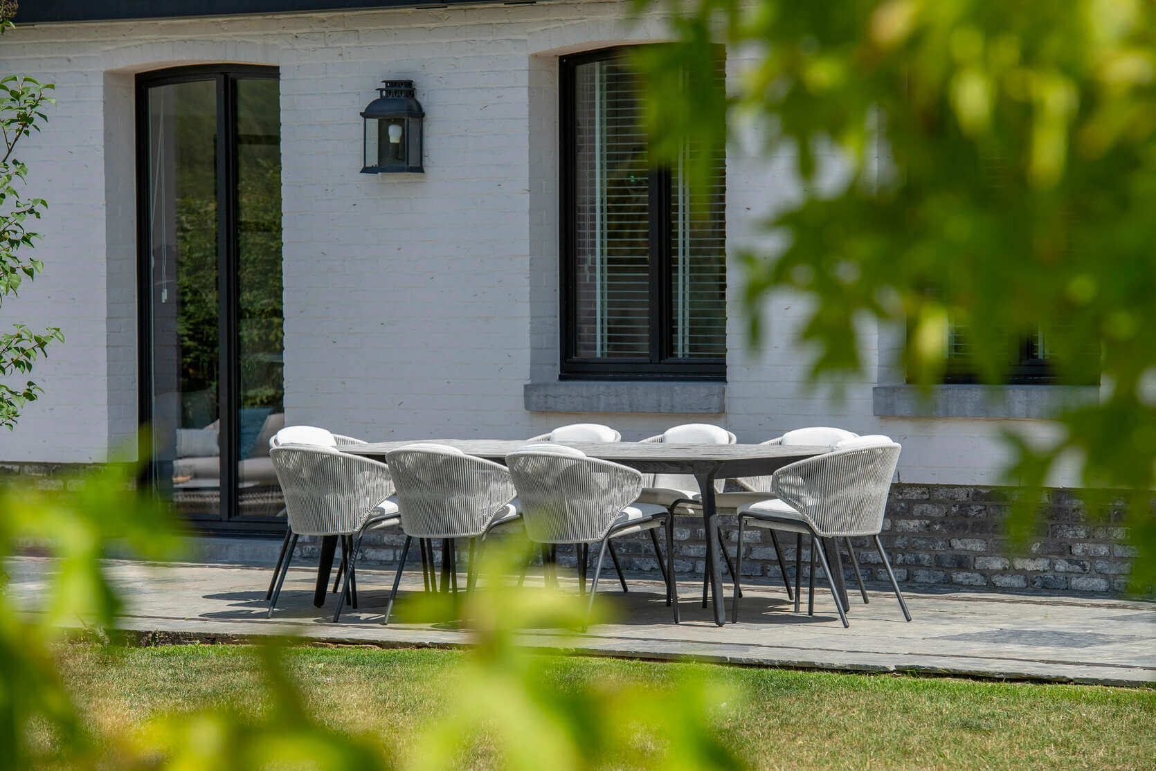 Adjoining a stud farm in the middle of the Brabant countryside, this house of classic proportions has been completely renovated by its current owners, a couple with 3 children. Their aim was to respect the classic spirit of the building, while adding a touch of modernity. The aim was to provide furniture that would add a modern touch to the large, long terrace.