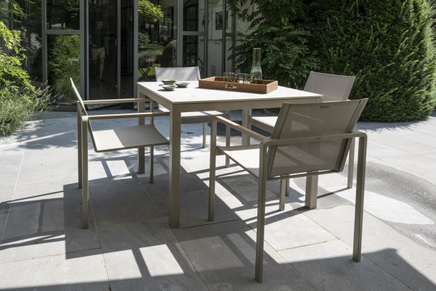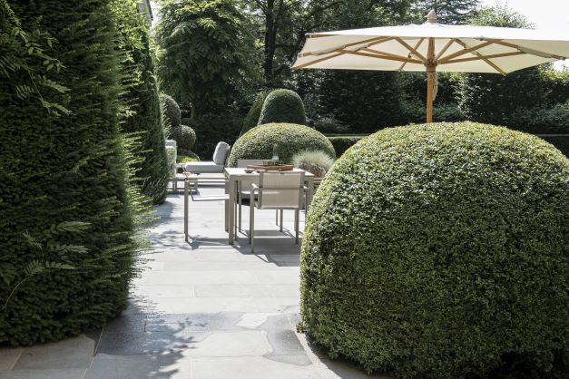 To renew the existing classic teak garden furniture with more contemporary, timeless furniture, while matching their neo-classical house designed over 20 years ago by architect Marc Corbiau. This was the request of the owners, a couple whose children left the nest a few years ago.