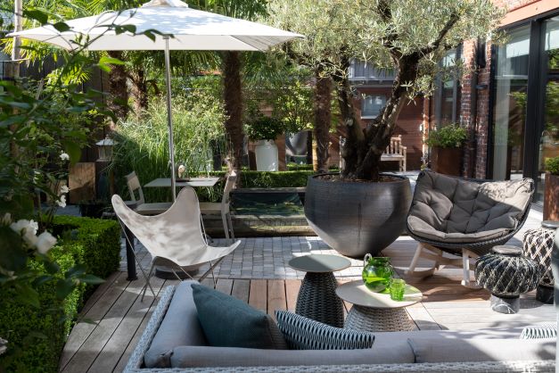 The customers’ wish was to create a little haven of peace out of sight, where they could eat, have an aperitif or simply relax on a fine summer’s evening with friends.